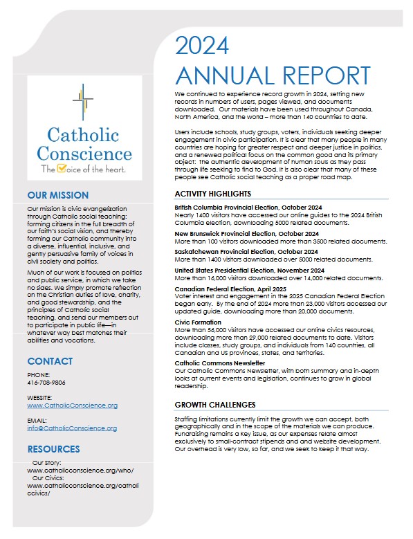 Catholic Conscience is a registered Canadian charity, Registration no. 701256521RR0001.